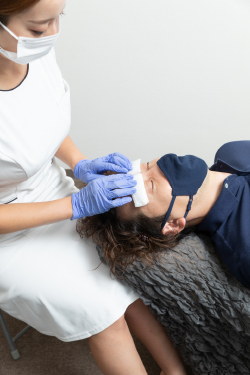 専用オイルで保湿し、鎮静ケア。赤みや腫れなどを軽減いたしますので、施術後に人と会う予定があっても大丈夫です。