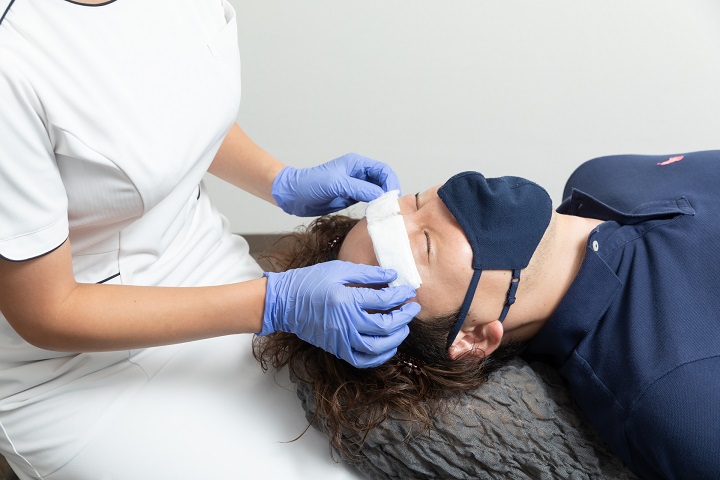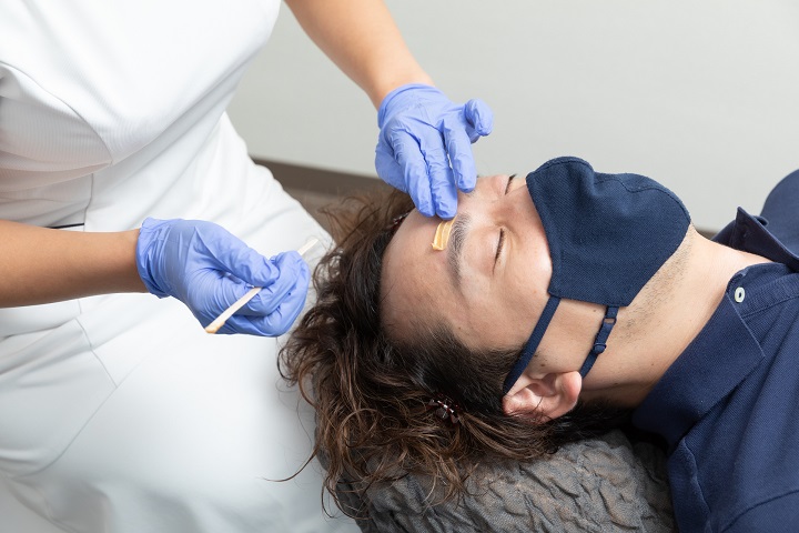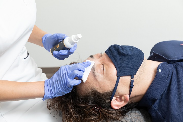 専用オイルで保湿し、鎮静ケア。赤みや腫れなどを軽減いたしますので、施術後に人と会う予定があっても大丈夫です。